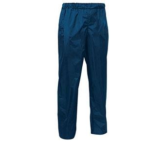 Cubre pantalón ligero de corte amplio, fabricado en tejido a la plana hidrofugado con recubrimiento de PVC.