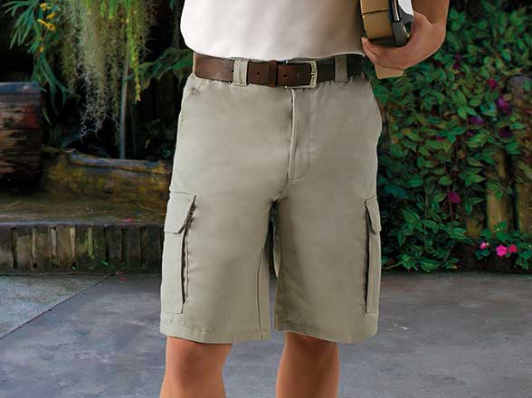 Pantalón corto multibolsillos de corte clásico, confeccionado en tejido de sarga resistente y duradera.